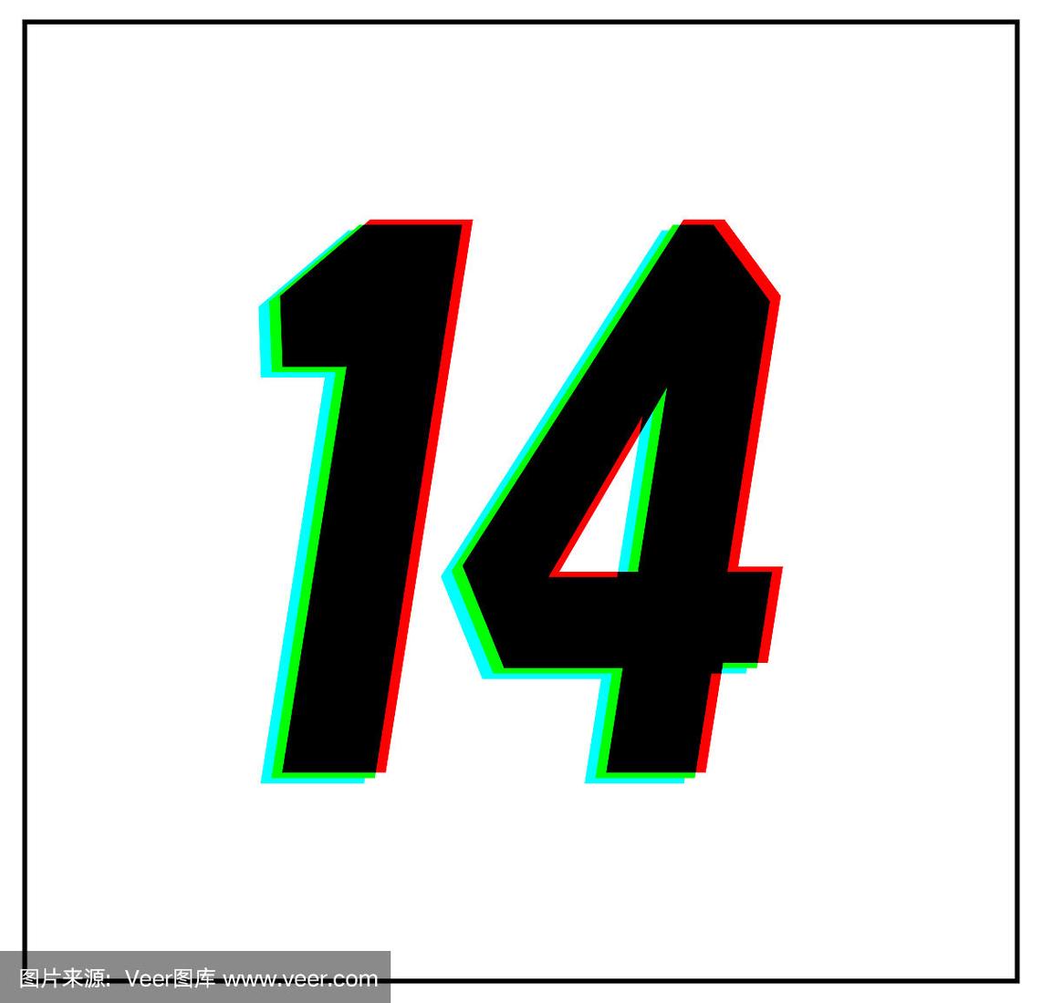 14号.动态,分色设计和矢量字体,数字阴影蓝,绿,红.
