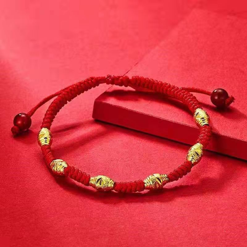 喜仕莱本命年红绳编织手链小金珠转运珠手链女黄金色镀金首饰