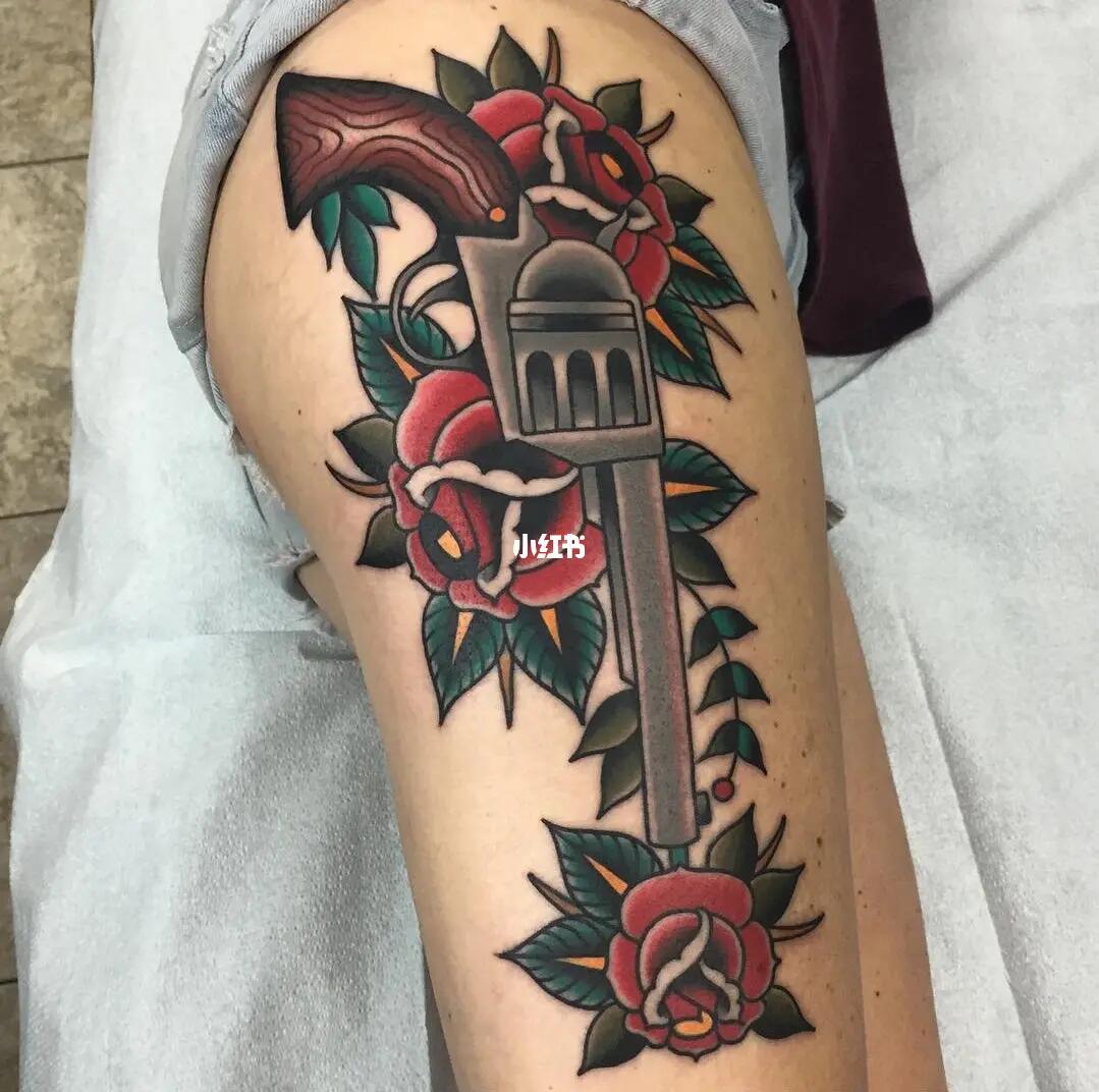 武汉纹身胡子哥大腿oldschool抢玫瑰分享