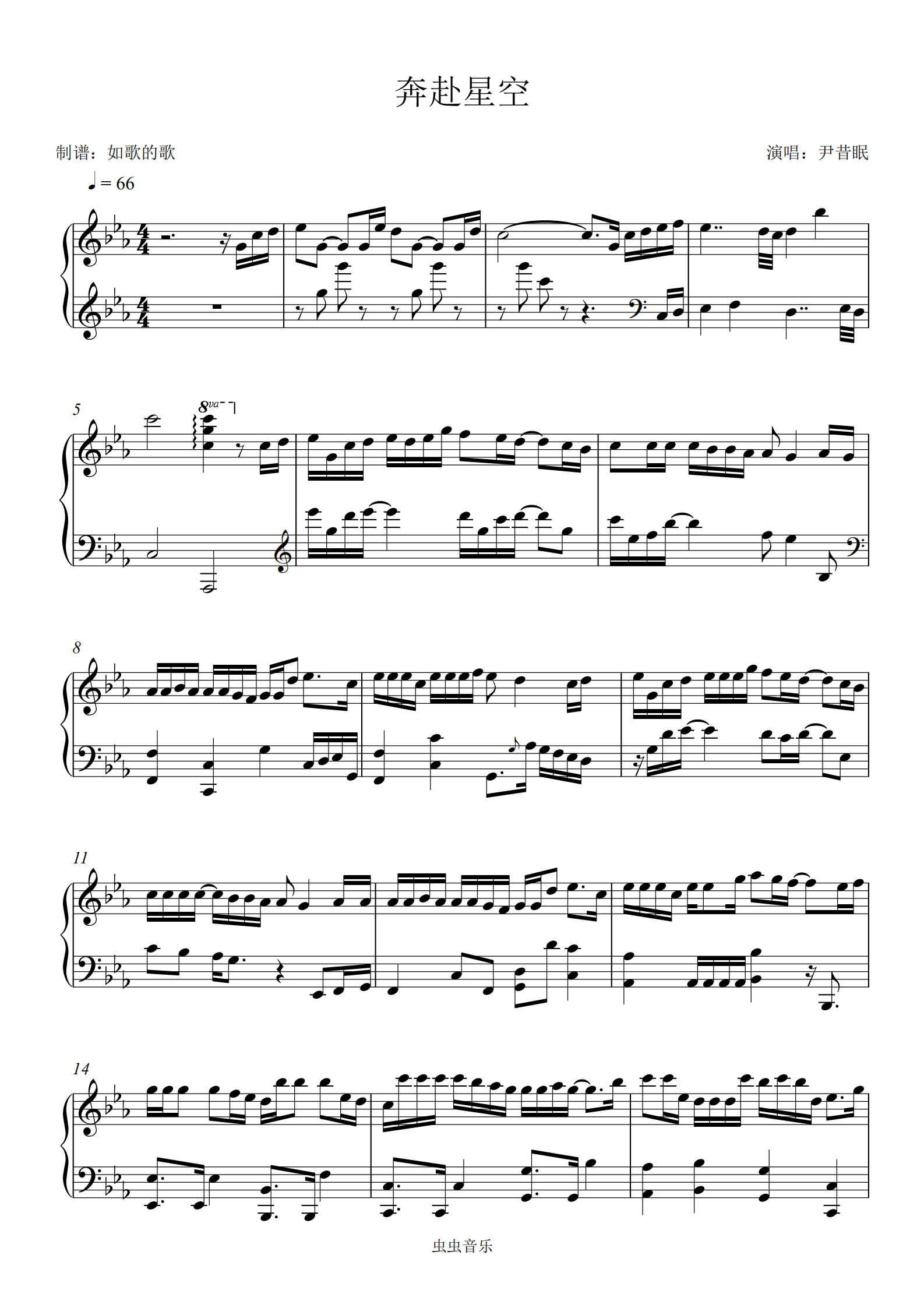 钢琴独奏网络热歌《奔赴星空》-尹昔眠钢琴谱-如歌的歌-虫虫钢琴