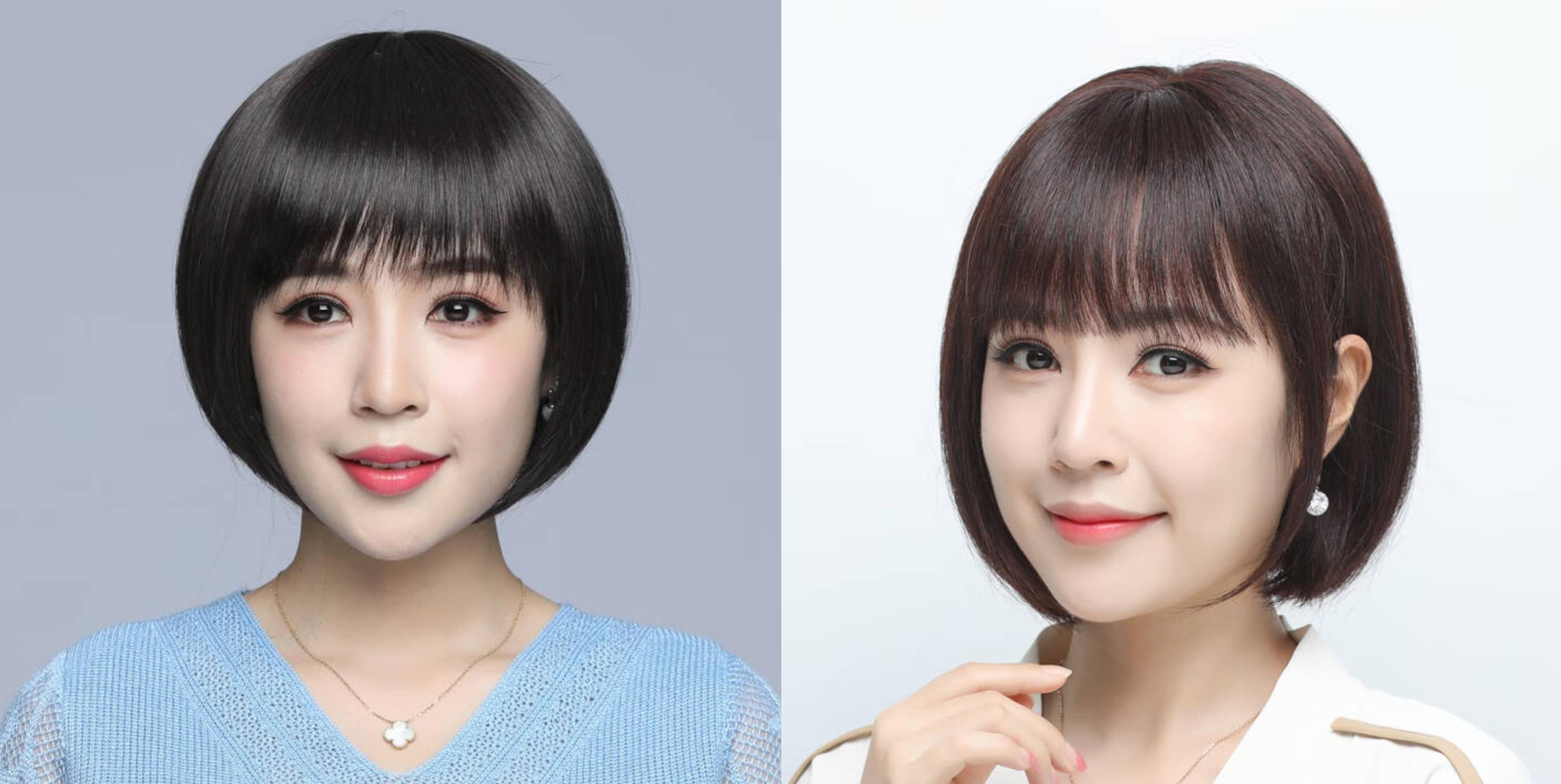 英琪假发女短发空气刘海减龄新款波波头圆脸自然发型全真发全头套