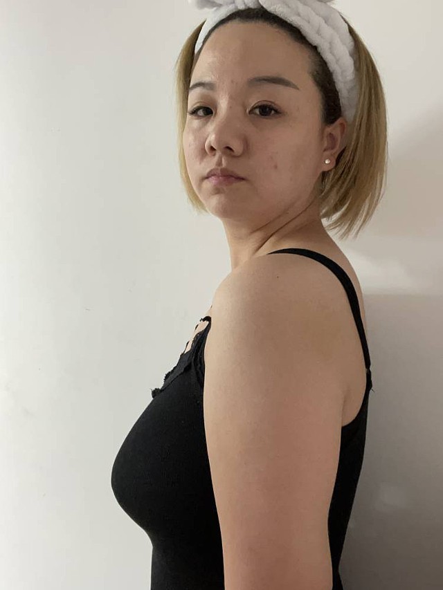 这位宝妈情况比较特殊,她二胎结束母乳喂养后,乳房萎缩空杯,中度下垂