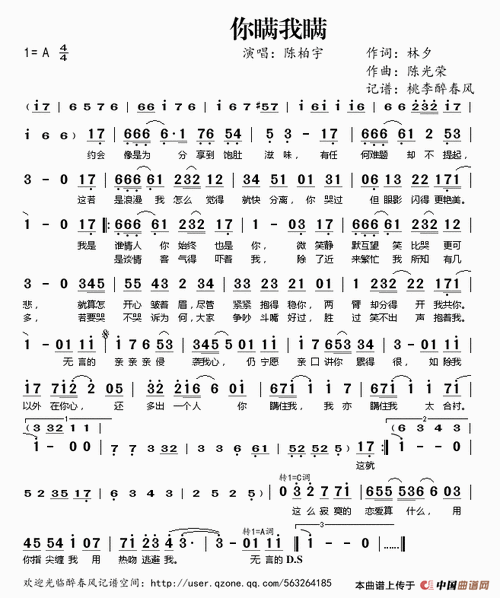 你瞒我瞒简谱(歌词)-陈柏宇演唱-桃李醉春风记谱1