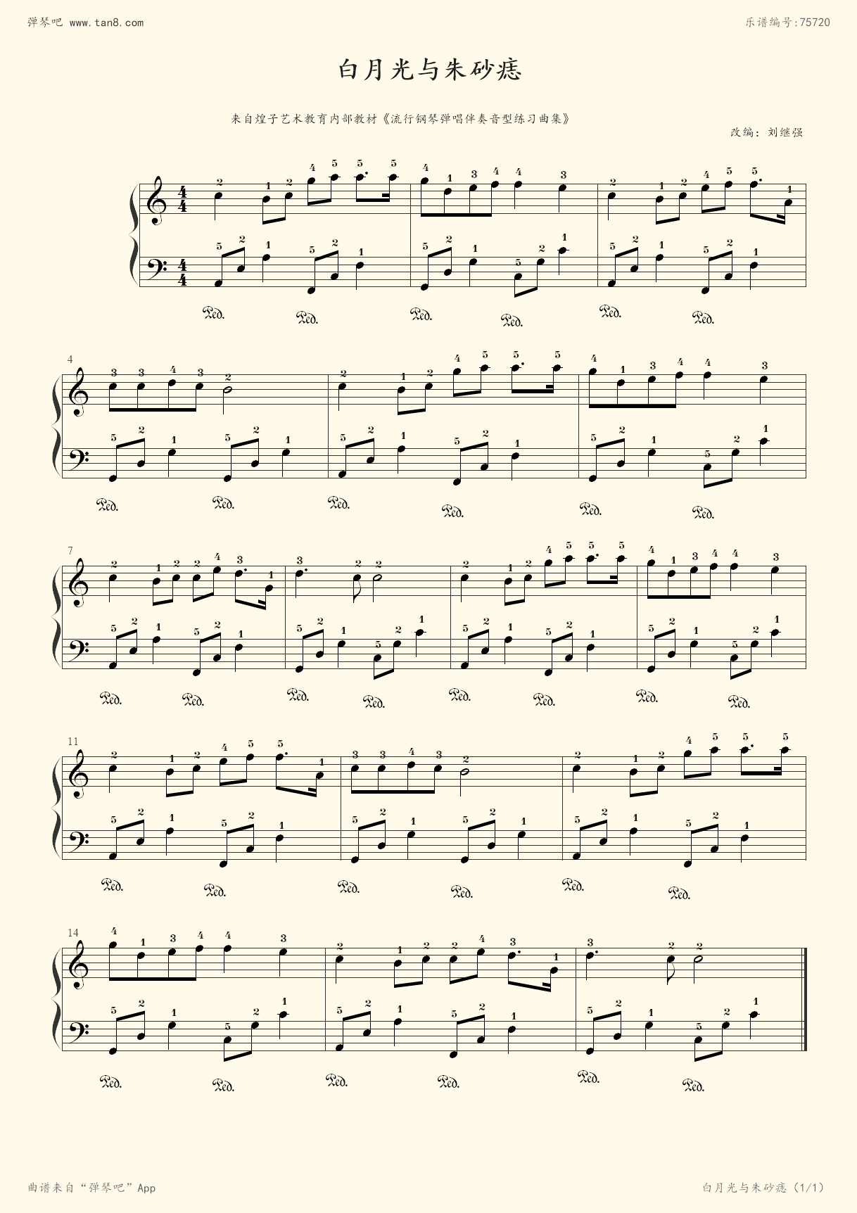 钢琴谱#白月光与朱砂痣钢琴谱c大调 - 抖音