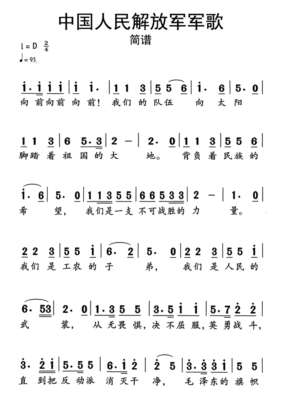 中国人民解放军军歌简谱 - 曲谱歌词网