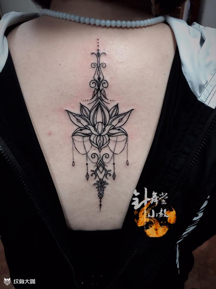 女生后背脊椎处莲花梵花纹身图案(5/9)