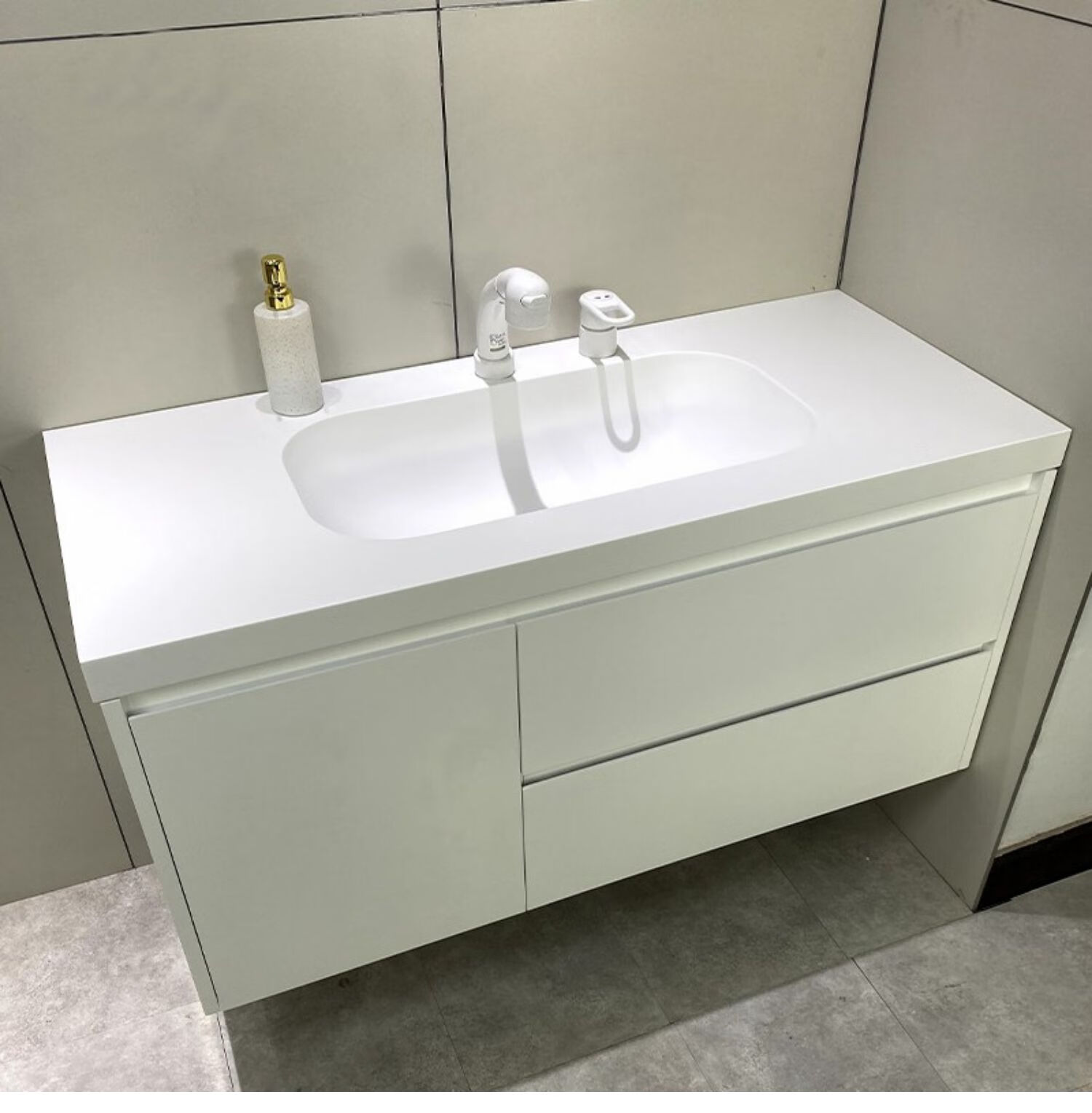 复古风浴室柜#杜邦可丽耐人造石 #家装建材卫浴 #可丽耐一体 - 抖音