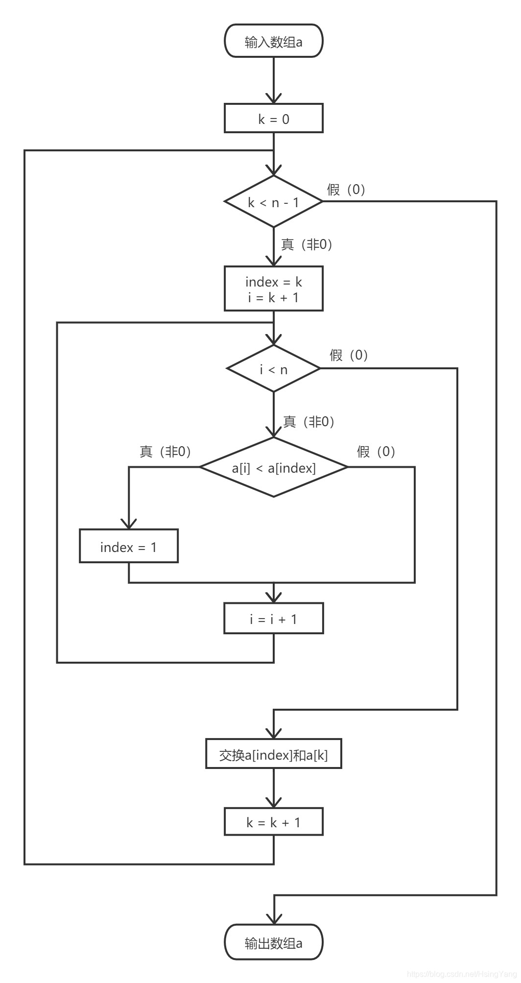 选择排序算法实现流程图