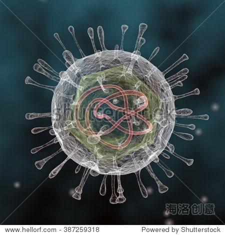 virus floating depicted with the surrounding protein envelope