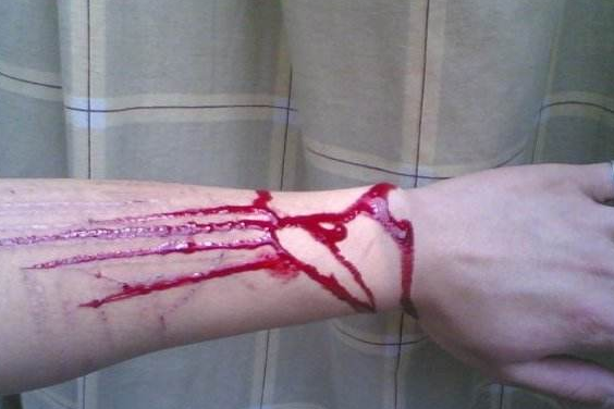 刀割胳膊流血图片
