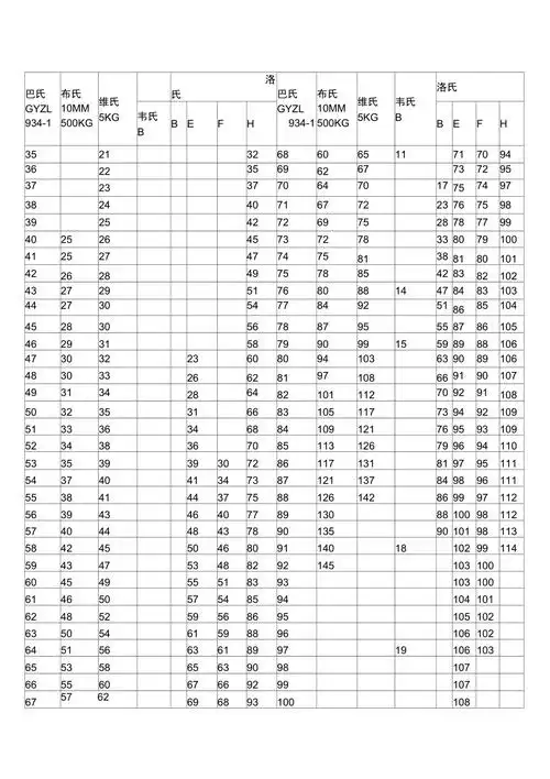 韦氏布氏维氏巴氏硬度换算表