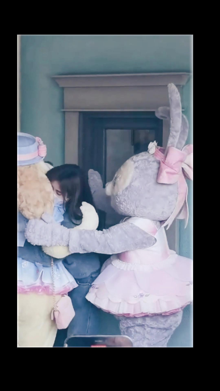 星黛露薅鞠婧祎头发 鞠婧祎在迪士尼和饼饼露露贴贴,好甜美的画面