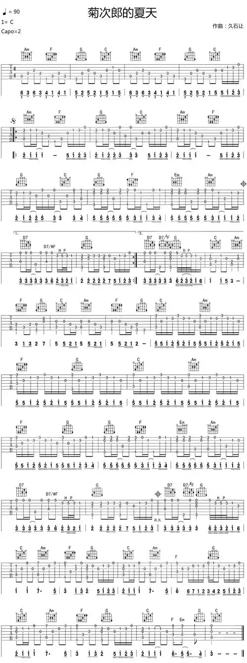 指弹独奏《菊次郎的夏天》吉他谱_c调和弦_高清六线谱_吉他图片谱子