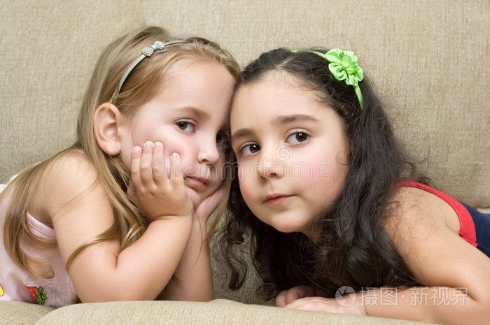 压在一起的两个小女孩摄影高清图片