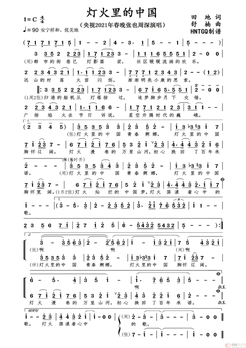 灯火里的中国简谱-张也,周深演唱-hntgq制作曲谱1