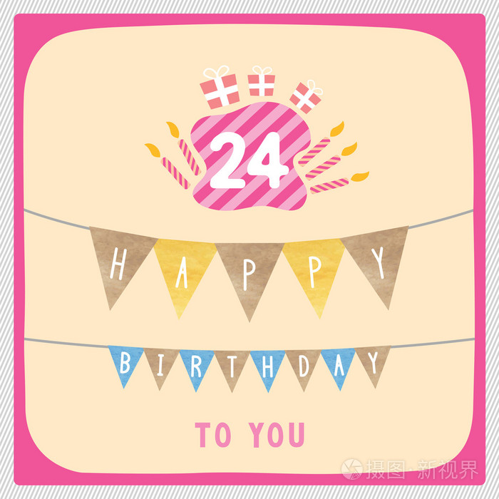 24岁生日快乐矢量插图贺卡彩色装饰品图片素材