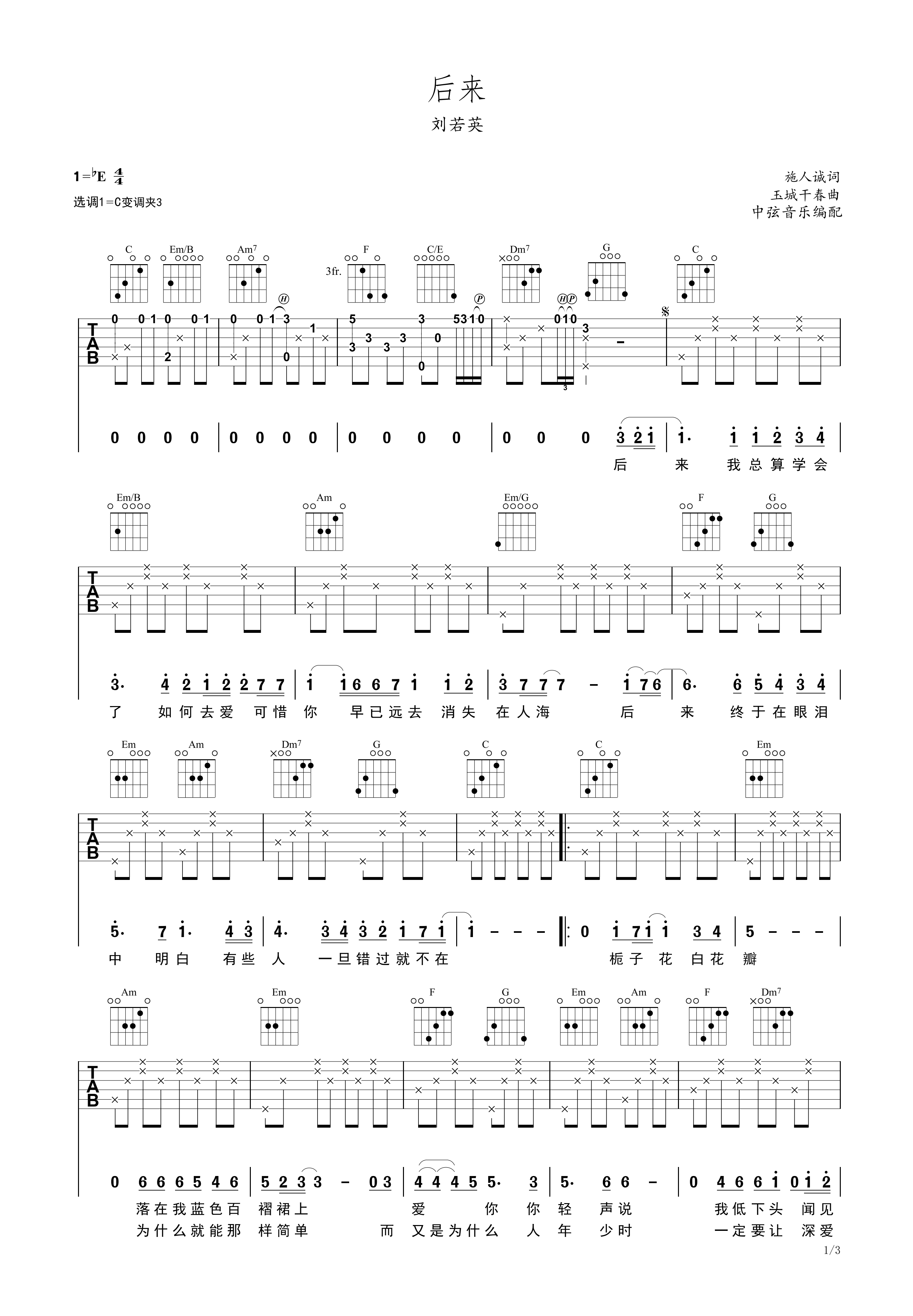后来c调六线pdf谱吉他谱-虫虫吉他谱免费下载