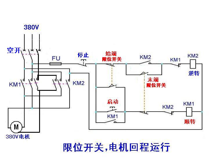 三相电机正反转接限位开关