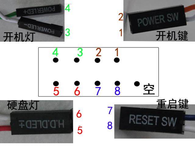 展开全部 根据主板上f-panel上的标识.插入对应的针脚即可.