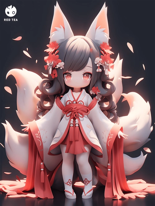 ai国风|q版人物|九尾灵狐93 九尾狐本是与龙凤齐名的神兽,也是所有
