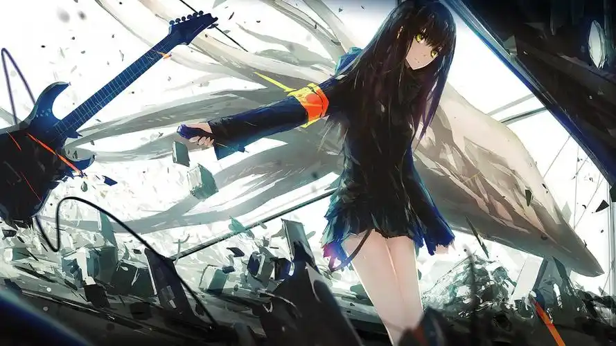 酷酷的短裙动漫美女吉他手电脑壁纸