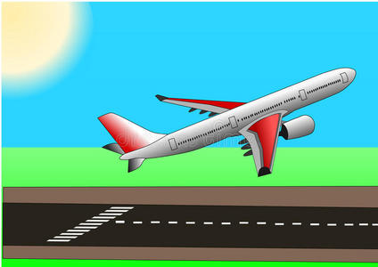 飞机跑道起飞插画