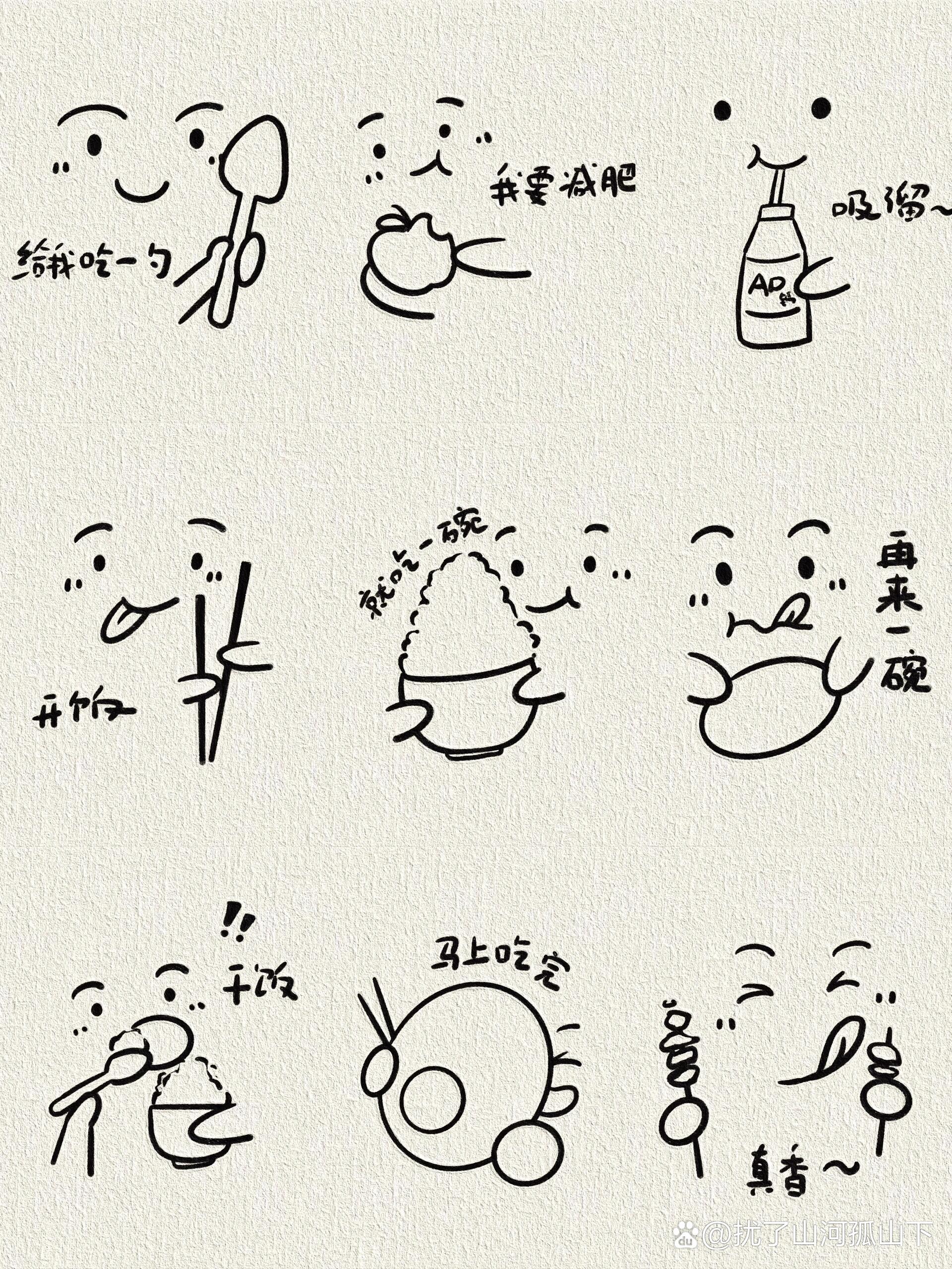 可可爱爱表情包简笔画第15弹~干饭篇 干饭人干饭魂,干饭都是人上人