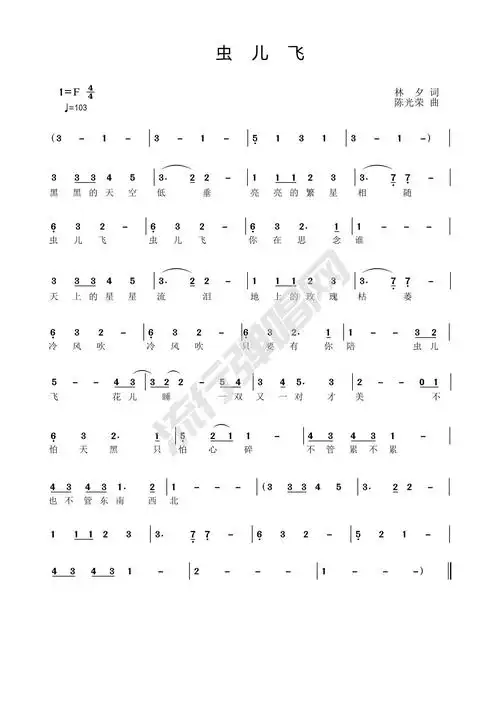 虫儿飞简谱-儿歌-你以为这首就是正儿八经的儿歌了-钢琴谱网