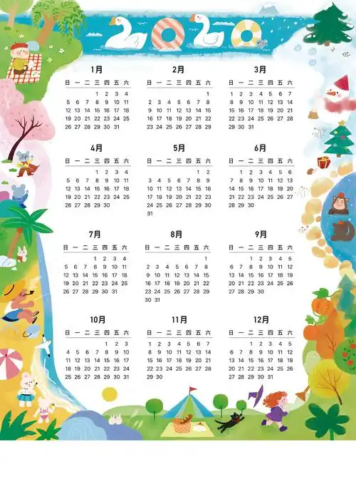 2020年日历-单张a4打印版年历(全年在一张a4上)