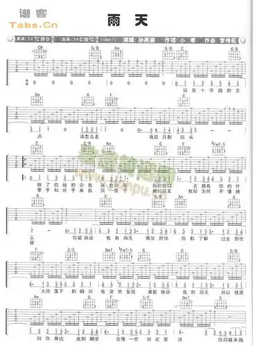 雨天吉他谱_孙燕姿_g调指弹 - 吉他世界
