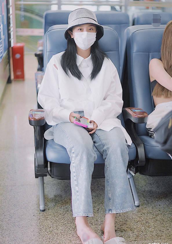 赵小棠光着小脚丫坐在沙滩上,看样子是刚做完游戏.