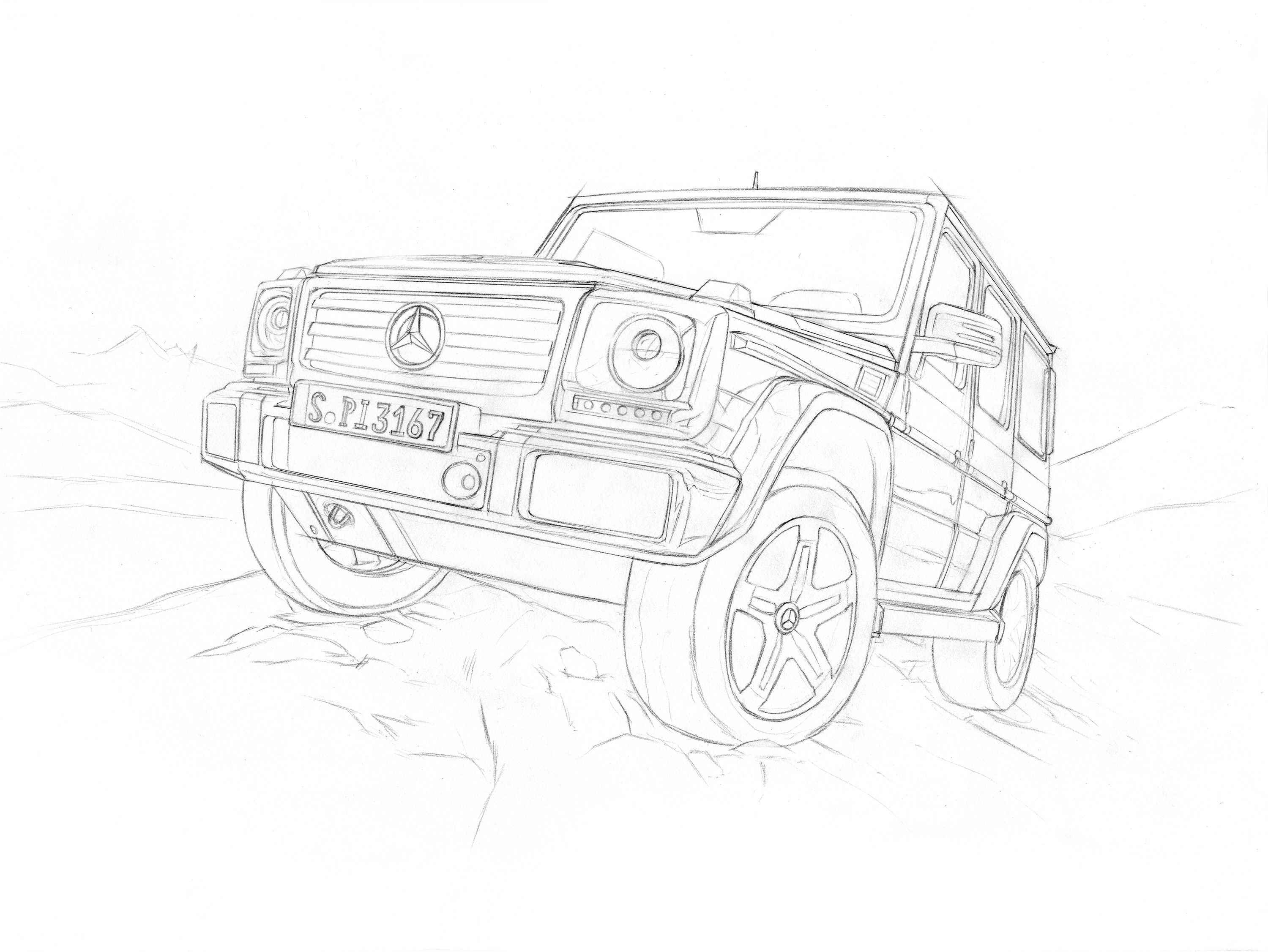 奔驰大g简笔画