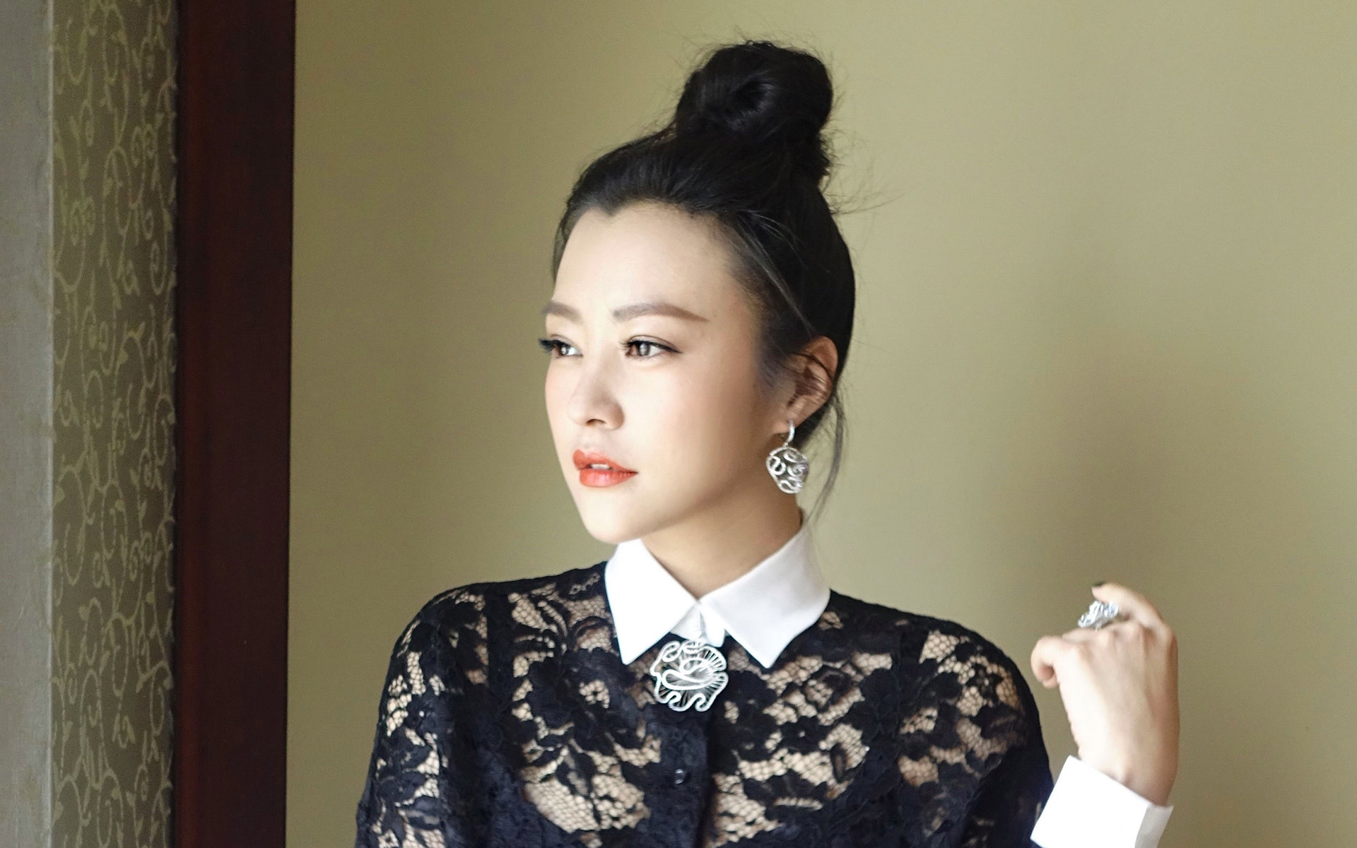 郝蕾黑色蕾丝裙气质美图电脑高清壁纸