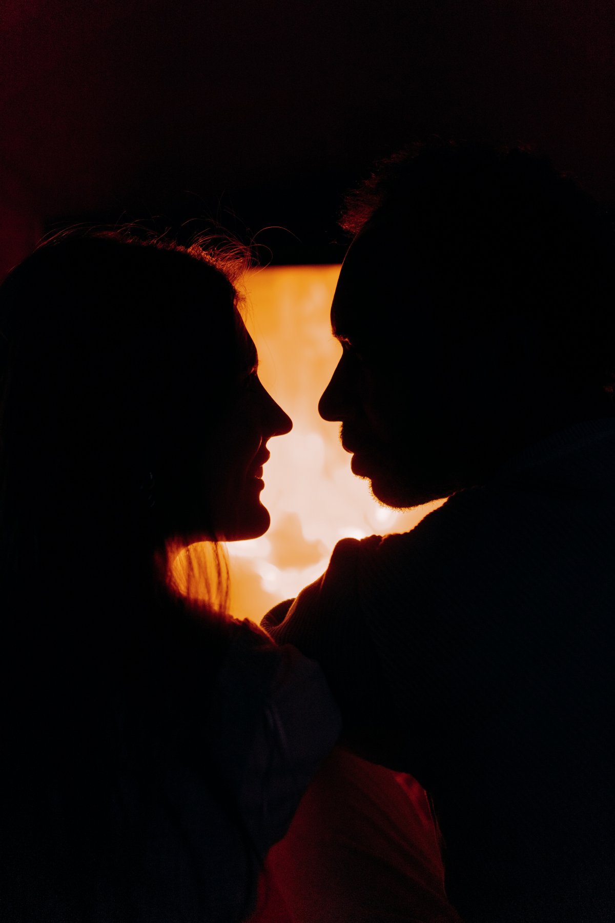 情侣深情对视剪影图片