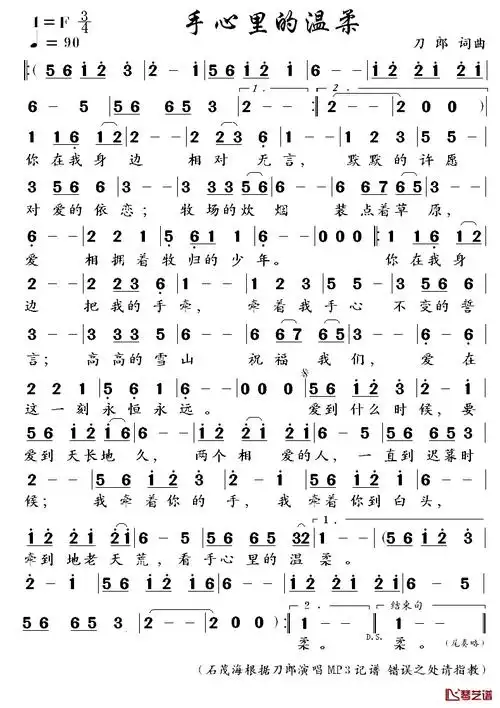 手心里的温柔简谱-刀郎词/刀郎曲1