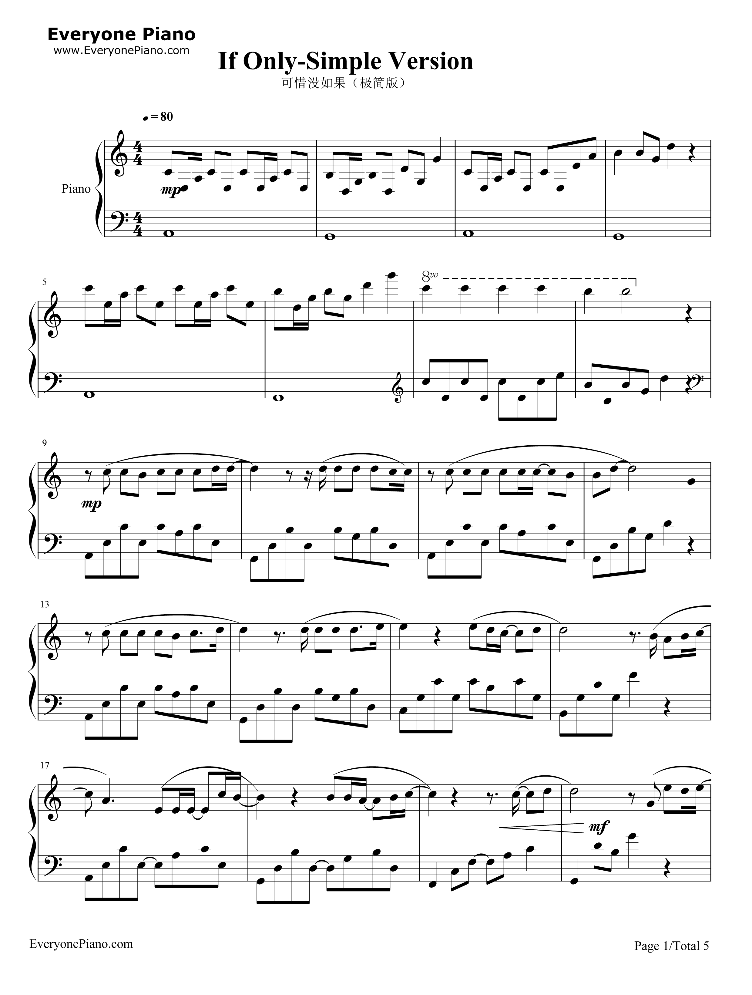 可惜没如果-林俊杰五线谱预览1-钢琴谱文件(五线谱,双手简谱,数字谱