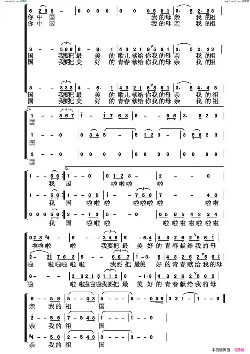 我爱你中国男女三声部合唱简谱1