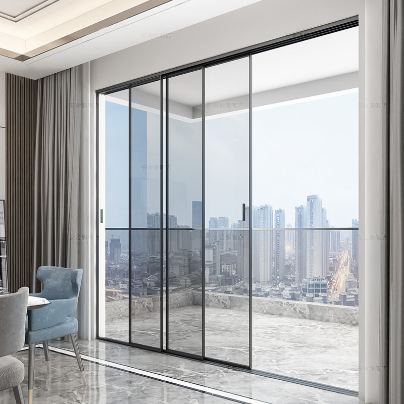 3壁厚三联动极窄边厨房推拉门阳台推拉门客厅玻璃移门铝镁合金