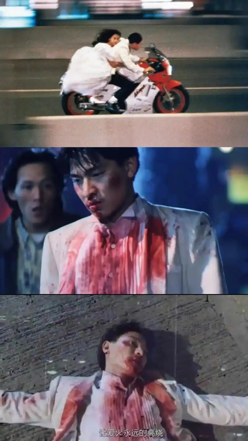 男明星里骑摩托车最帅的无疑是天王刘德华,《天若有情》里他流着血骑