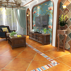 美式客厅仿古砖 田园防滑耐磨角花复古瓷砖 阳台卧室地砖 600*600
