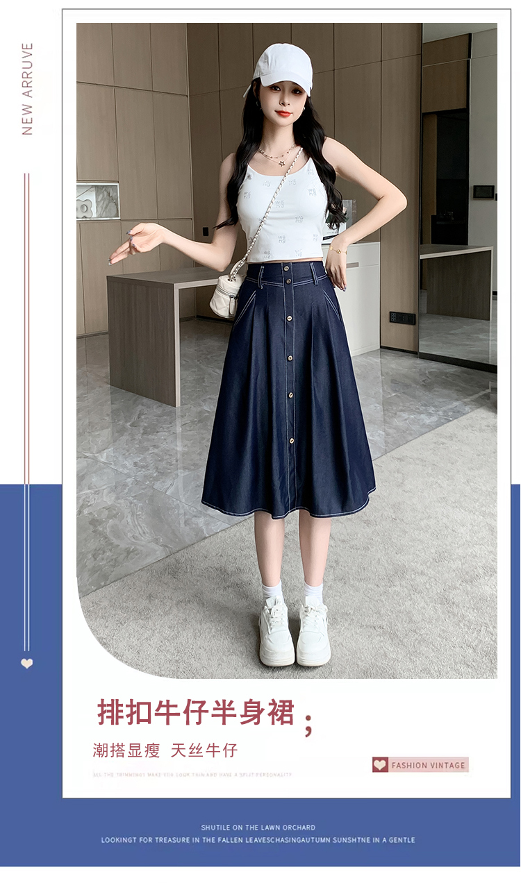 实拍夏款大码天丝牛仔女半身裙薄款胖mm宽松显瘦垂感a字中长裙… - 17