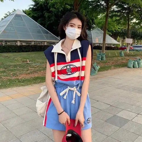 2022夏季欧货时尚女装宽松洋气拼色休闲套装