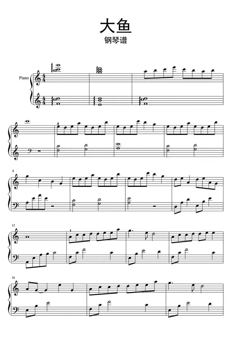 钢琴谱 #五线谱 #乐器演奏 #弹钢琴的小女孩 #大鱼 # - 抖音