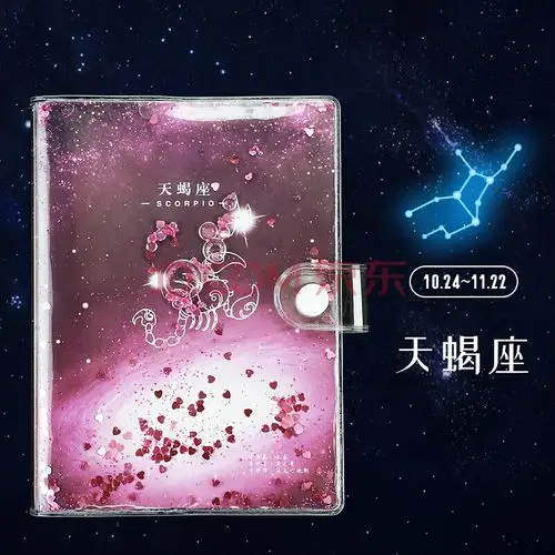 网红款十二星座手账本流沙入油胶套本文具彩页梦幻星空网红亮片液体不