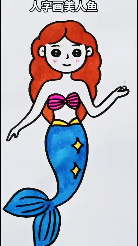0难度画一条漂亮的美人鱼.#绘画过程分享 #一学就会的简笔画 - 抖音