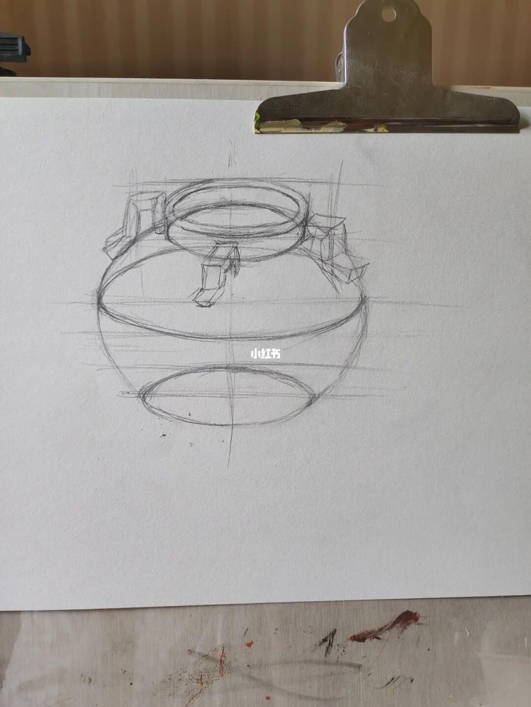 陶罐素描静物单体步骤分享