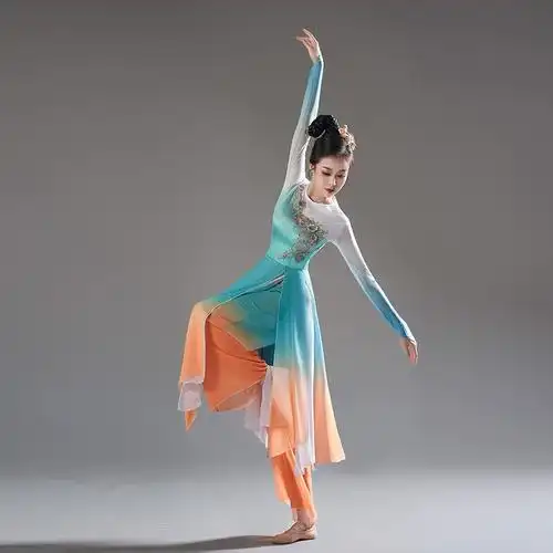 古典舞演出服女飘逸古风扇子舞蹈服装练功服纱衣艺考现代舞表演服