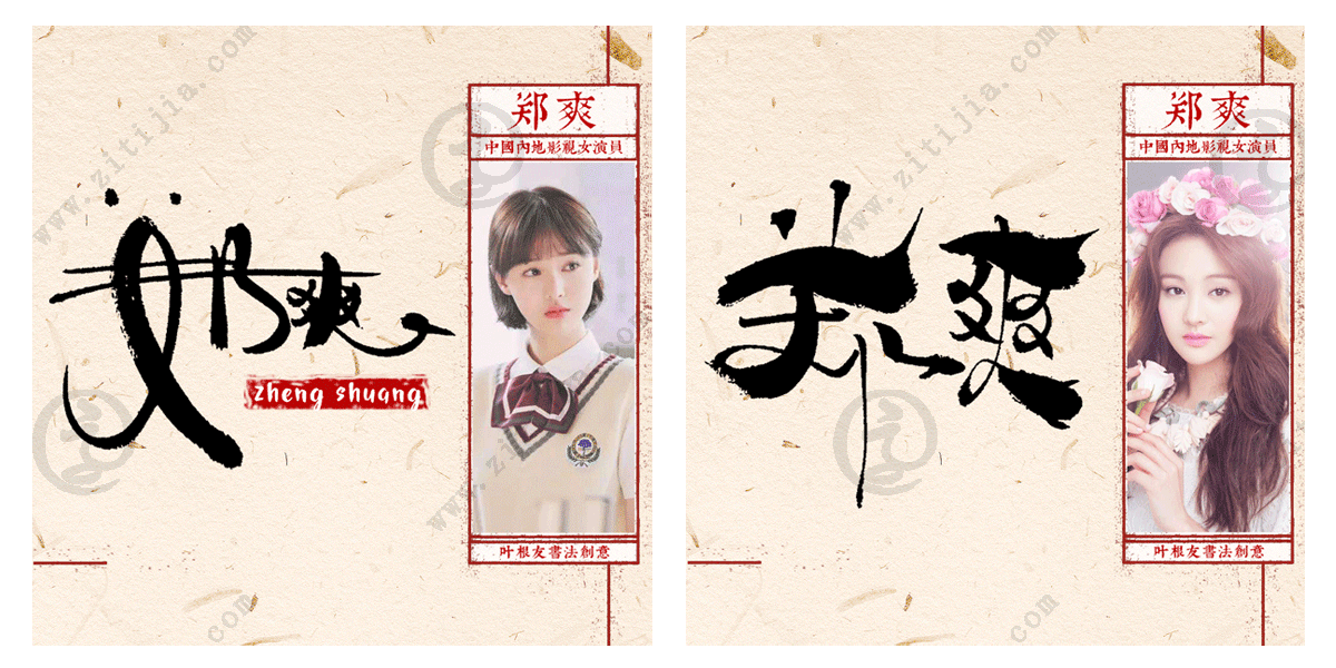 直率可爱郑爽名字书法设计欣赏