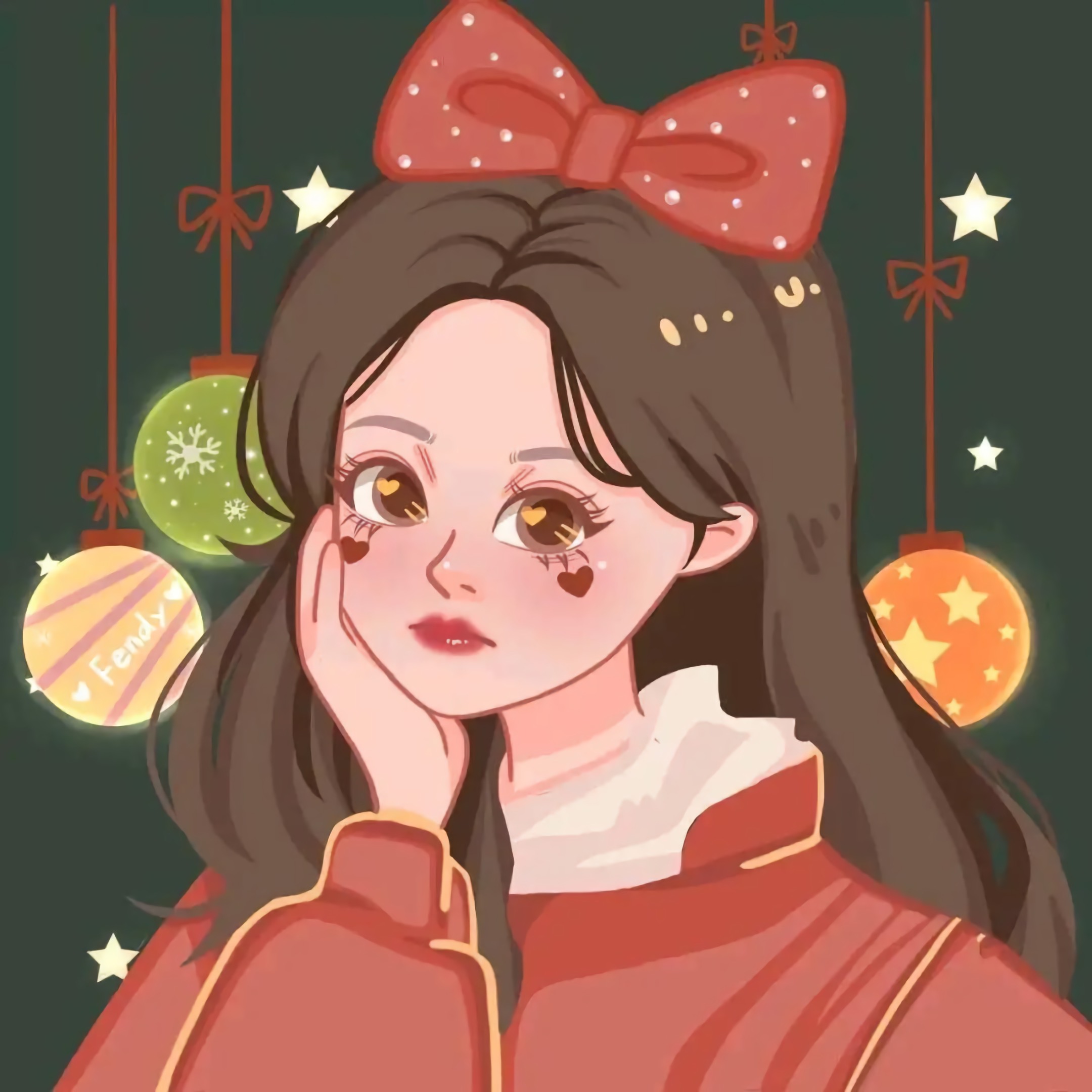 超可爱的手绘女生头像,红红火火的卡通头像