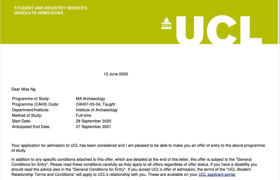伦敦大学学院offer